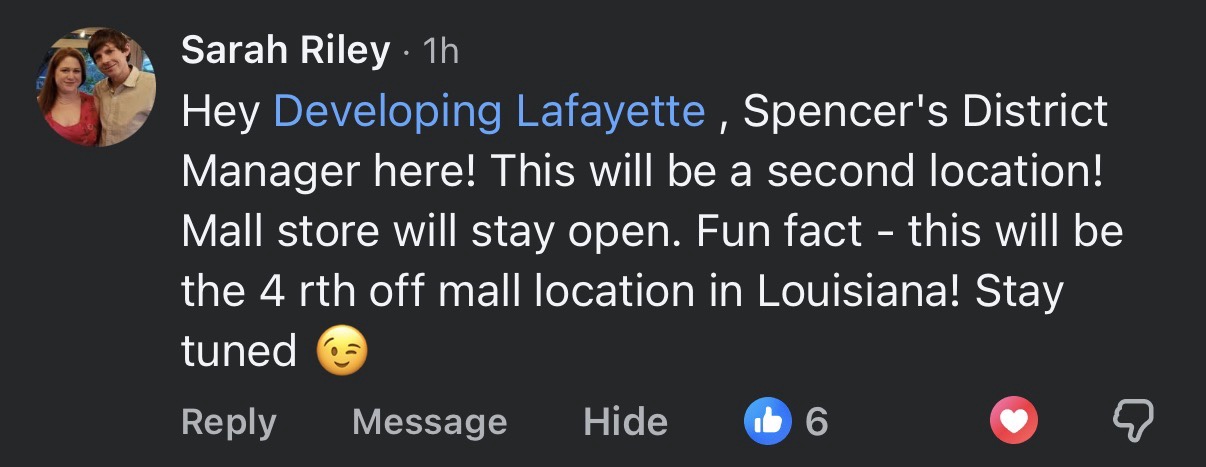 ***UPDATE: This will be a 2nd Lafayette location for Spencer’s Gifts, as confirmed by the District Manager. Acadiana Mall location will remain open!