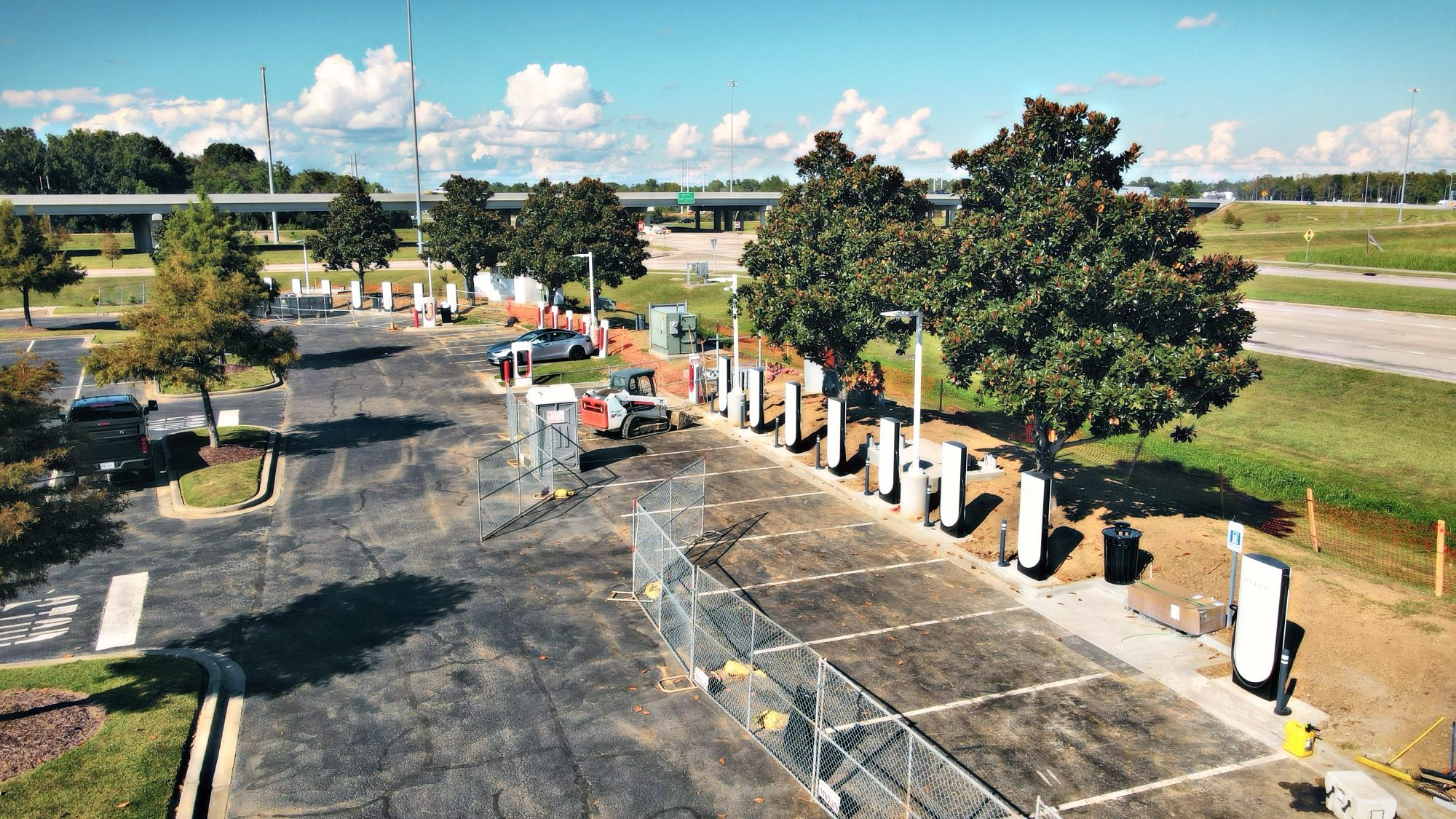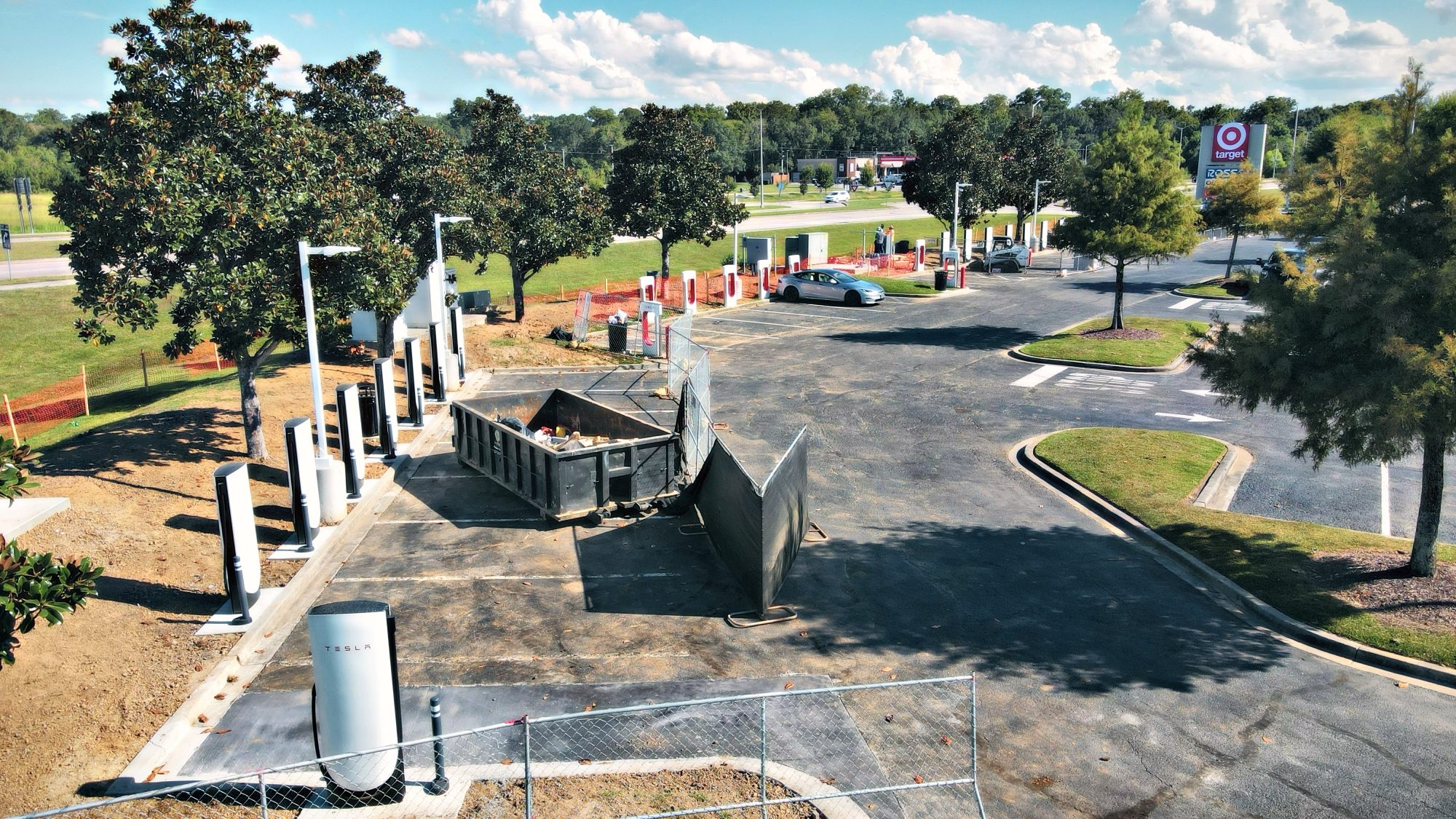 The new stalls are being installed in front of Petco, ULTA, and Office Depot, across from Chick-fil-A—joining the 8 existing V3 Supercharger stalls already on-site for a total of 24 superchargers.