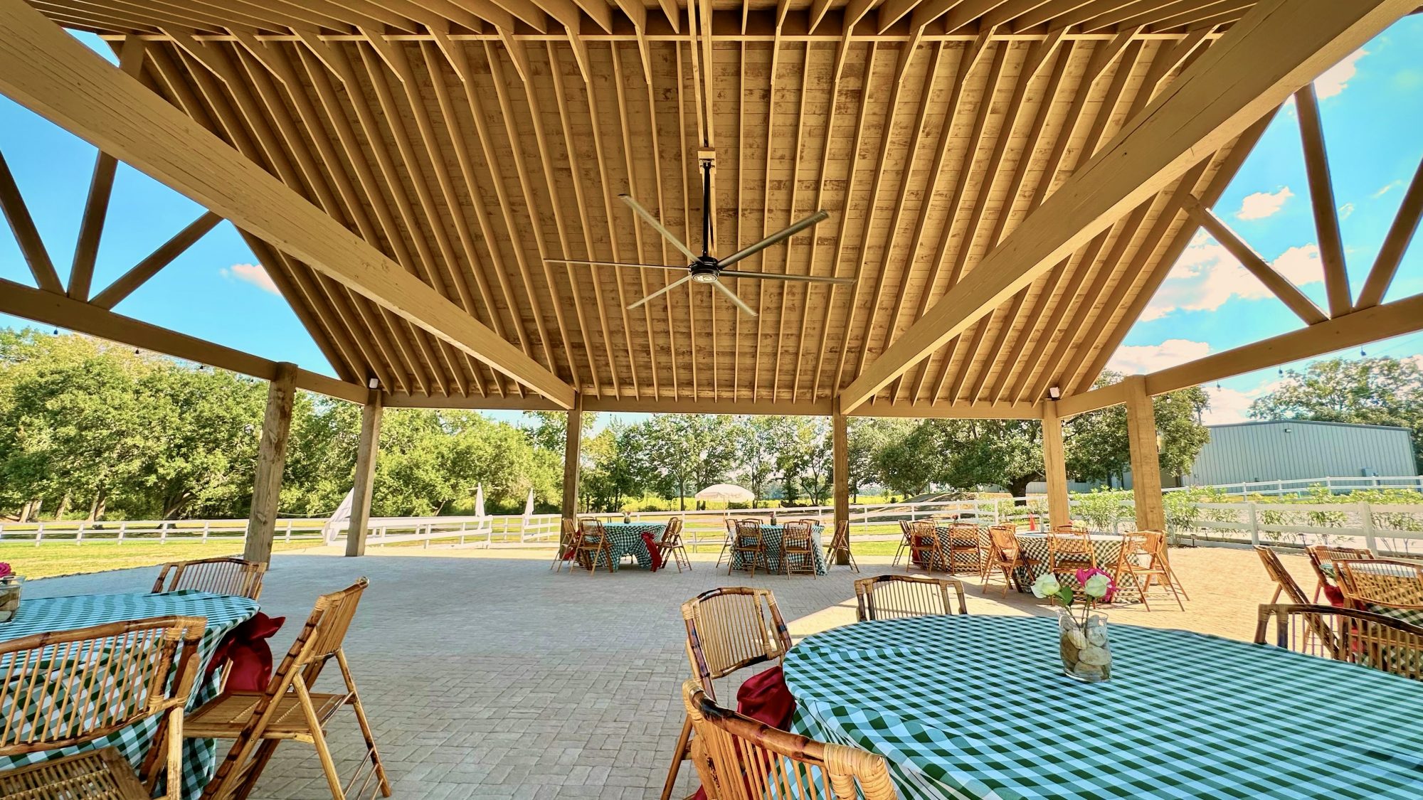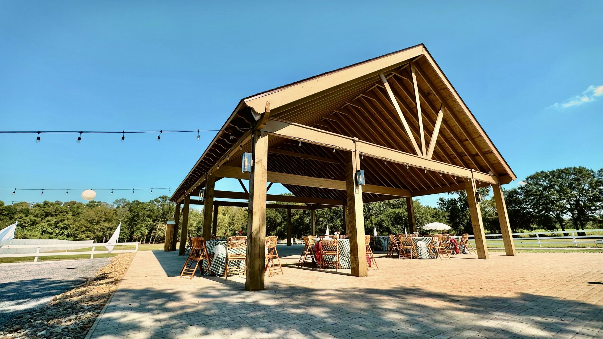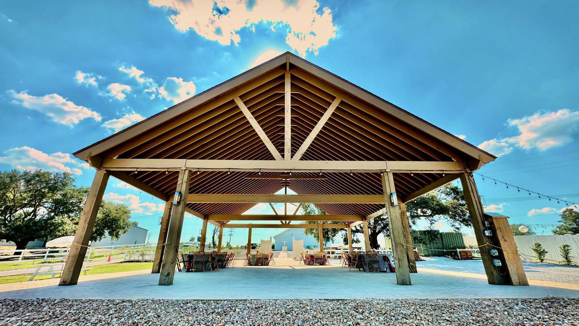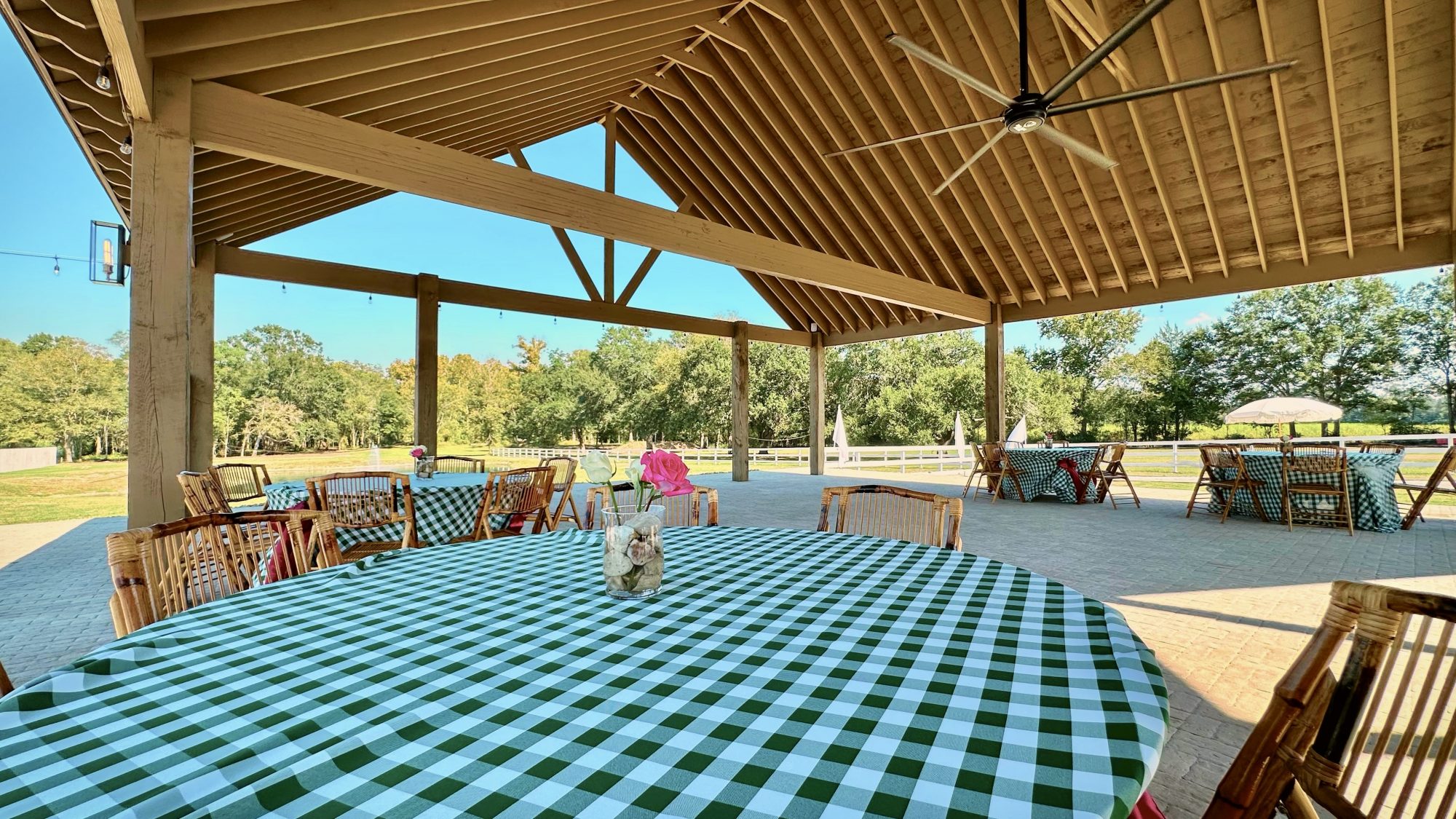 Designed for weddings, showers, banquets, galas, and more, Calvary Creek features a large covered rustic-style pavilion with warm lighting and lots of greenery. The space hosts live weekly outdoor concerts along with hosting many other events.