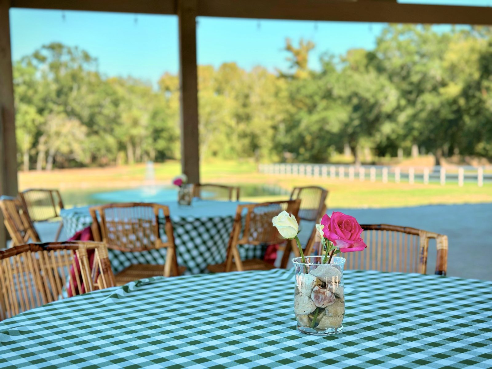 Located just down the road from Lafayette and Youngsville, the venue sits on a hill overlooking a pond with lots of natural wooded scenery.
