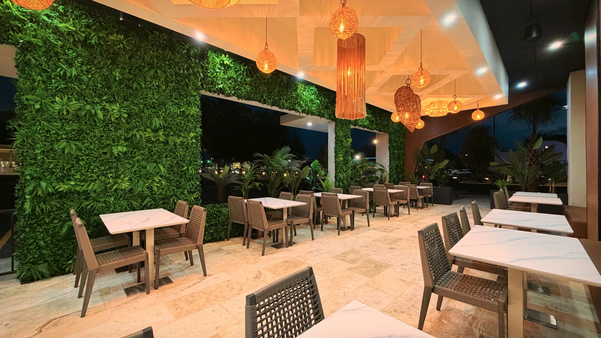 Inside, the former Chili’s building has been fully remodeled. The layout now features a casual brunch environment with so much greenery that it would make our sponsor, The Apothecary Shoppe, blush. Complementing the lush green aesthetic are updated flooring, modern yet earthy lighting, and a dedicated bar for coffee and brunch beverages. The newly added patio also features a lush green vibe with lots of seating. To be honest, the outdoor space feels very much like the interior space.