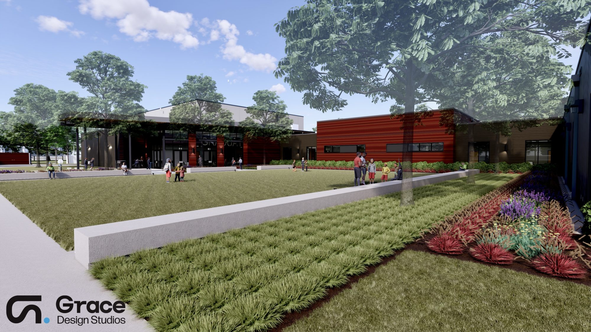 The new JS Clark campus will feature an allied health wing, modern science labs, and a technology repair station where students will service computers and tablets as part of their curriculum. The building will also include a 520-seat gymnasium with locker rooms and a weight room, a football practice field, and a coffee shop designed as both a community gathering space and a student work opportunity.