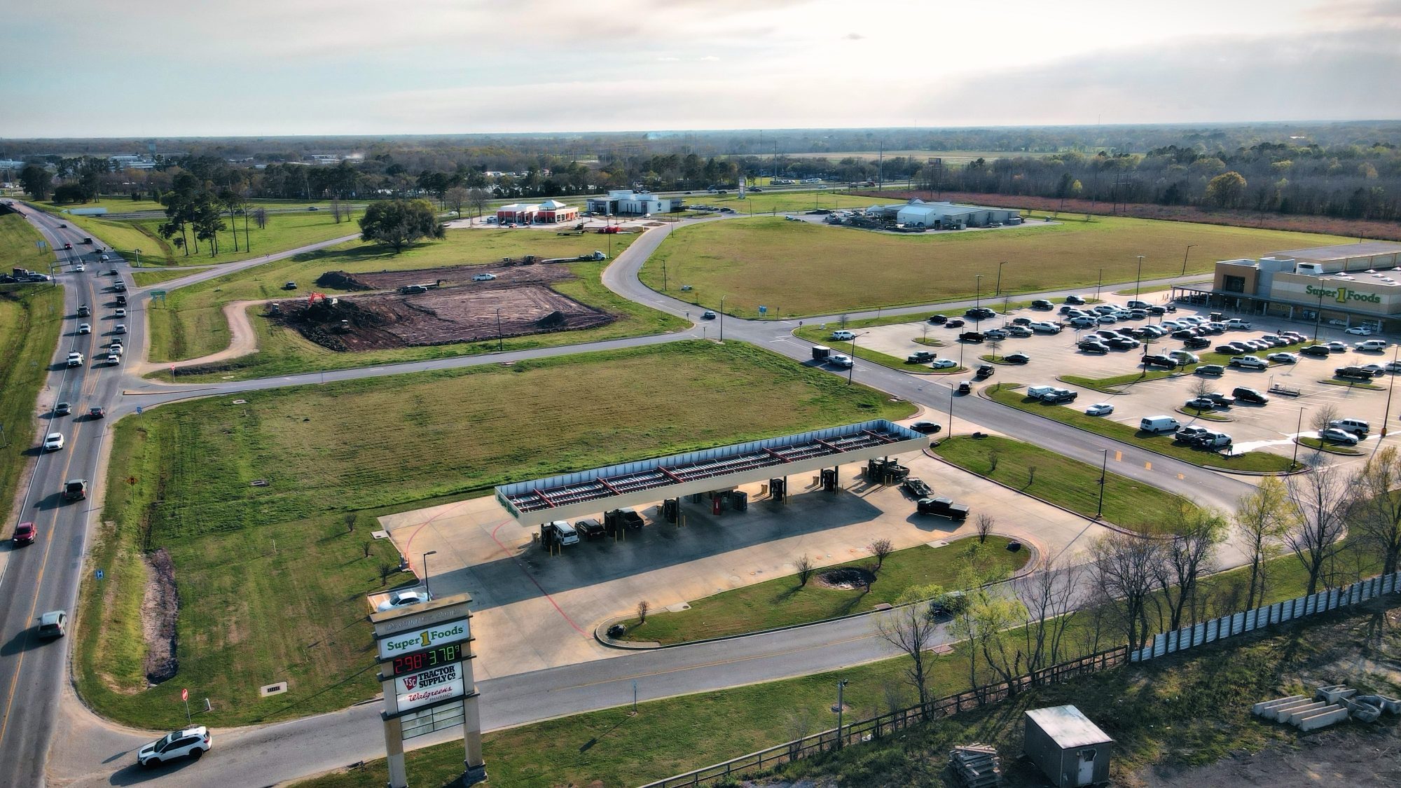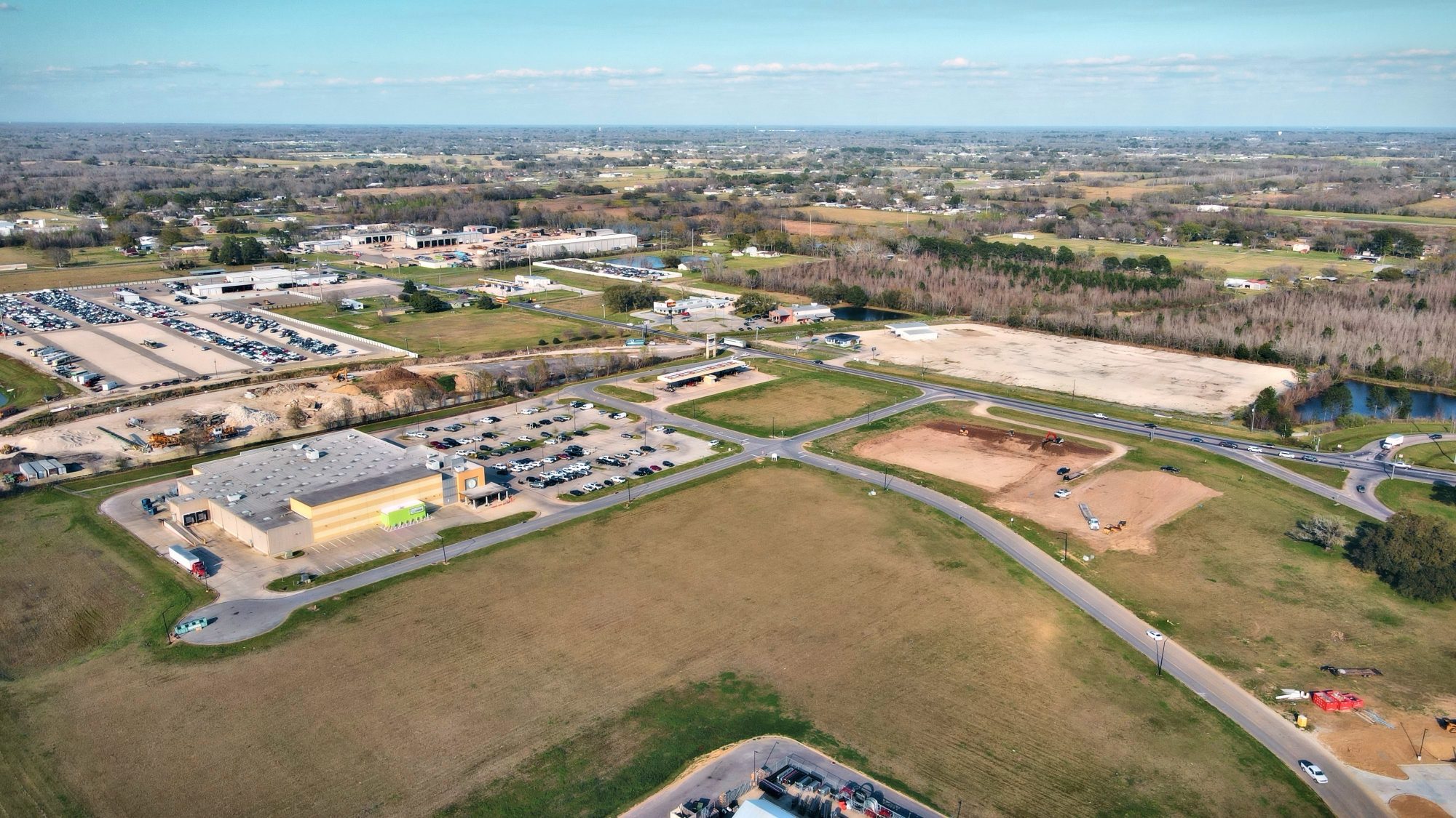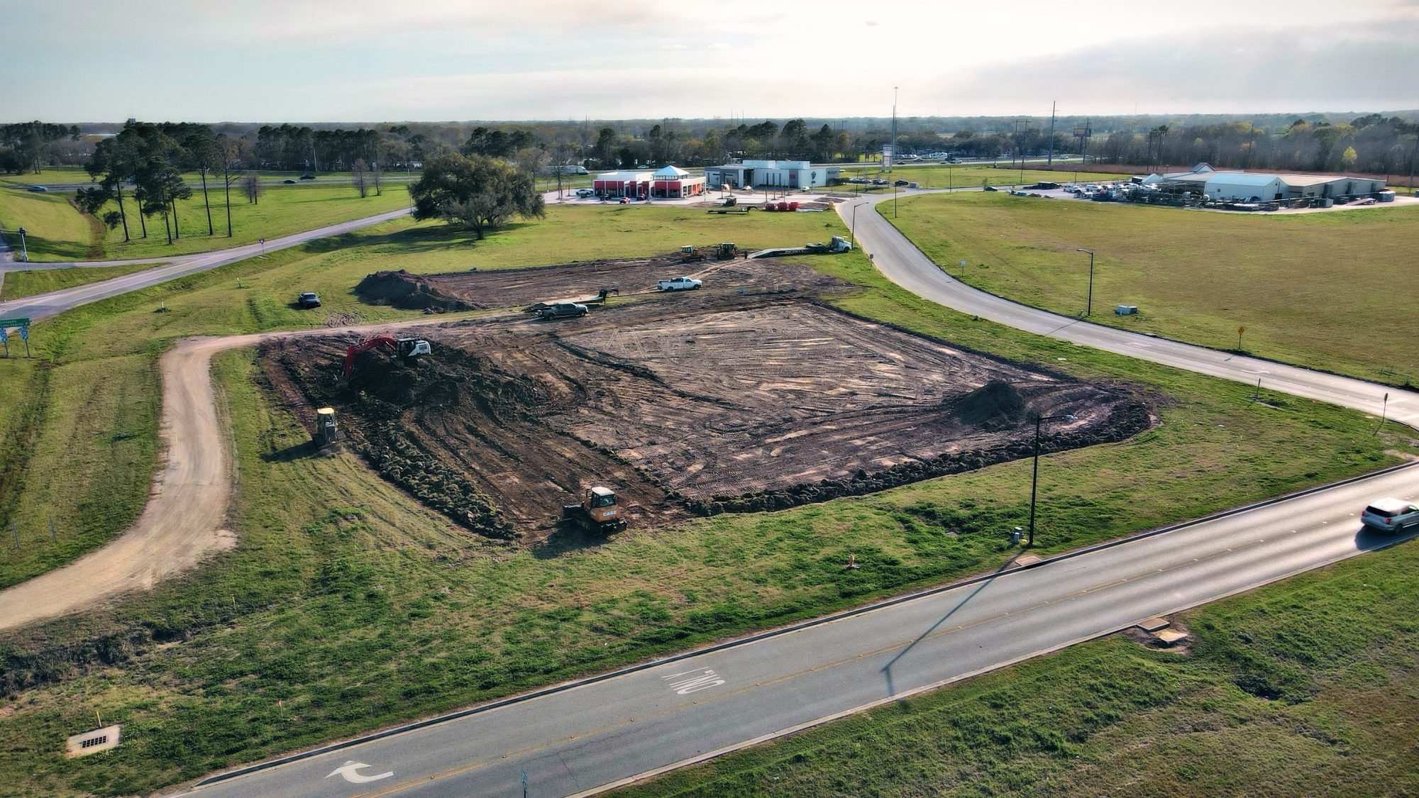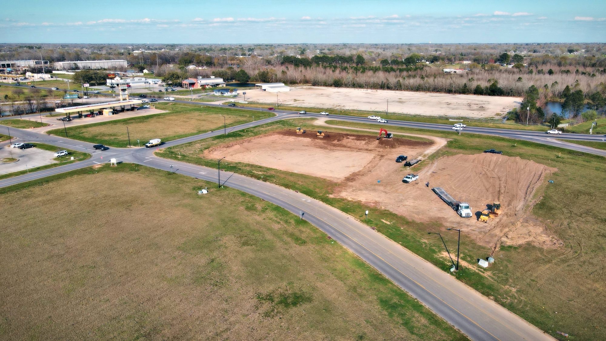 A large commercial development featuring a new convenience store (c-store) and two restaurant spaces is under construction in Scott, Louisiana, along the I-10 frontage road within the Destination Pointe area off Highway 93.