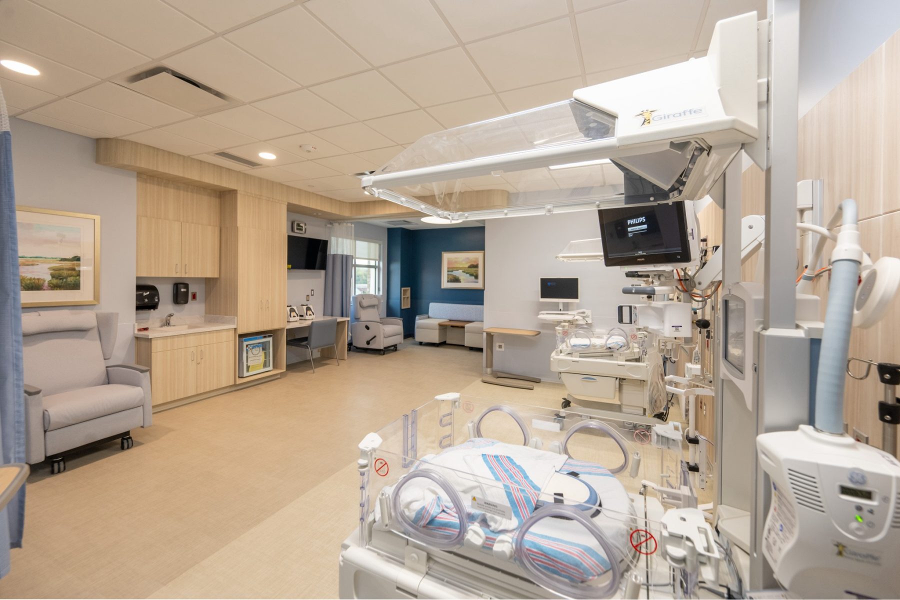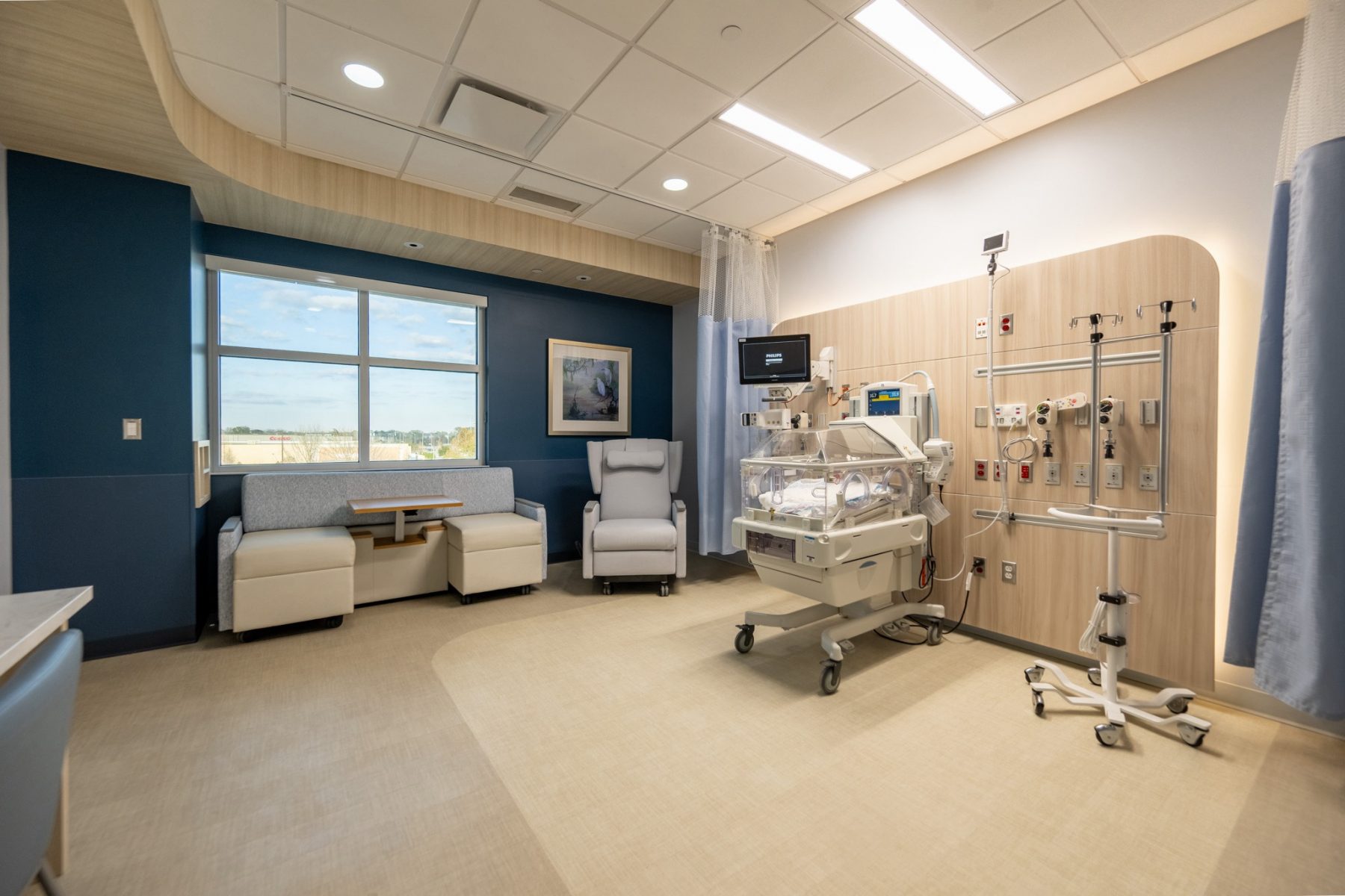 “All of our rooms are private, light, and designed to be a healing space,” said Christine Istre, Senior Director of Children’s Services. “It’s quieter, it’s more peaceful, and families are able to stay with their babies. That alone changes the entire experience.”