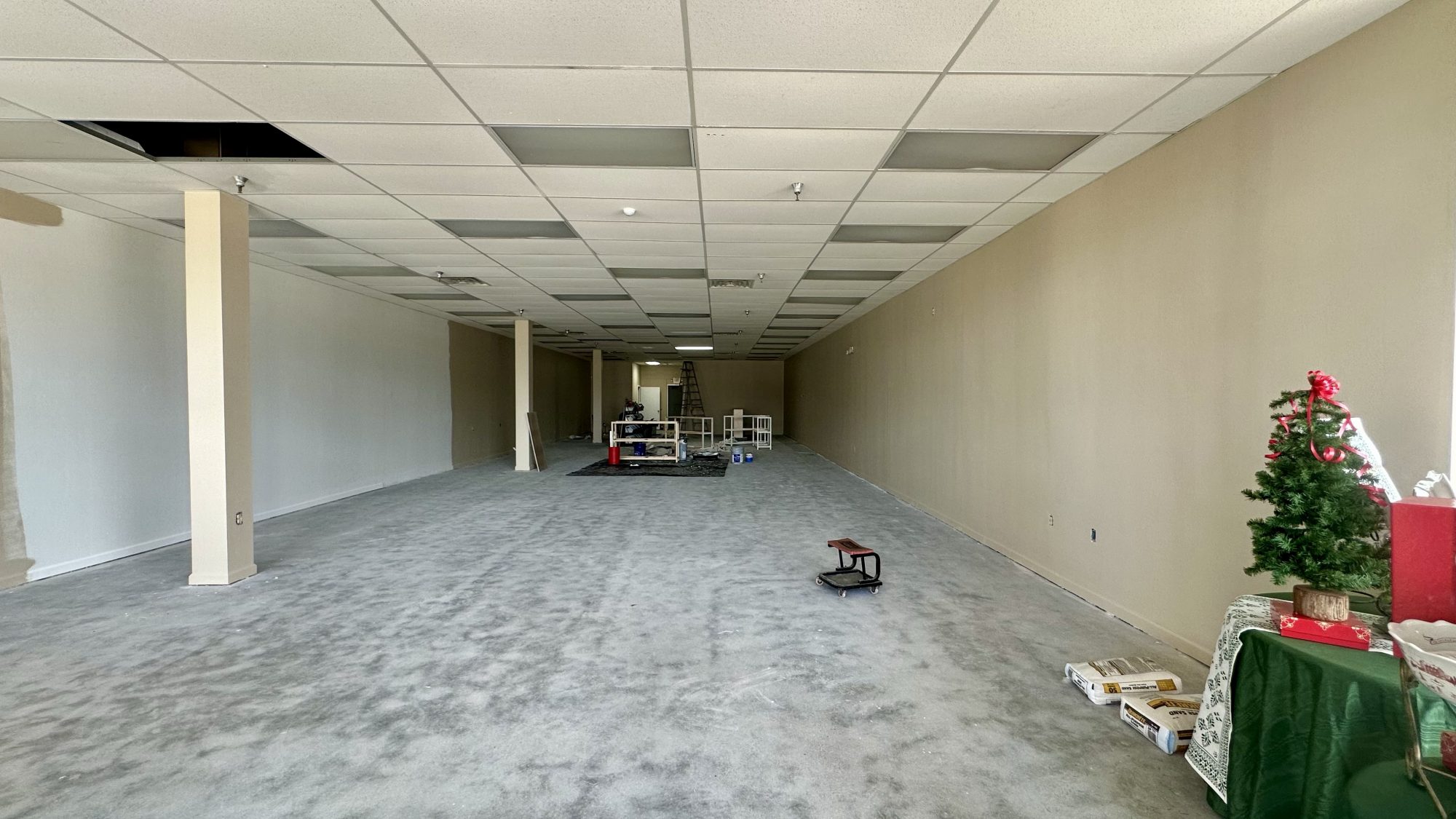 The shop’s current 3,500-square-foot space is being extended by about 2,700 additional square feet, bringing the total footprint to just over 6,200 square feet once complete. Construction began toward the end of September, with crews opening the adjoining wall to connect the new space with the existing showroom.